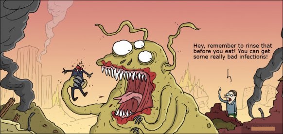 嘿,在你吃之前记得冲洗!否则你要得到一些传染病!