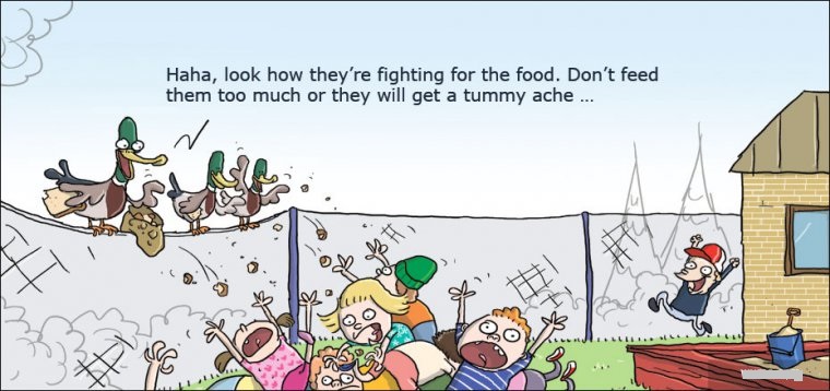 Haha, look how they're fighting for the food. Don't feed them too much or they will get a tummy ache ...