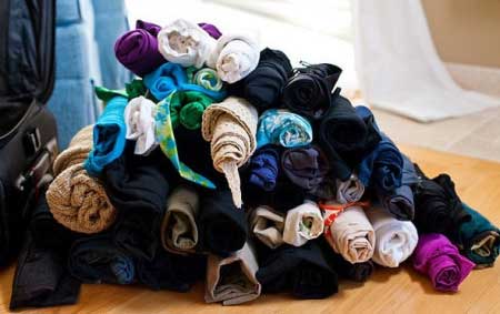 2.所有衣服都如法炮制,卷成轴状。