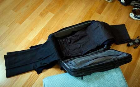 Here's the same bag packed with the same items, but folded in the traditional manner.