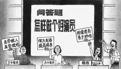 当回答如何做一个好演员这个问题的时候,三十年代的演员坚持“先学做人,再学做事”的原则,六十年代的演员认为应该“深入生活、提高修养”,而现在的演员则认为关键的因素在于“漂亮脸蛋、善于炒作”