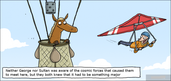 neither george nor sultan was aware of the cosmic forces that caused them to meet here, but they both knew that it had to be something major