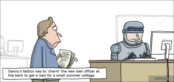 danny's tactics was to 'charm' the new loan officer at the bank to get a loan for a small summer cottage