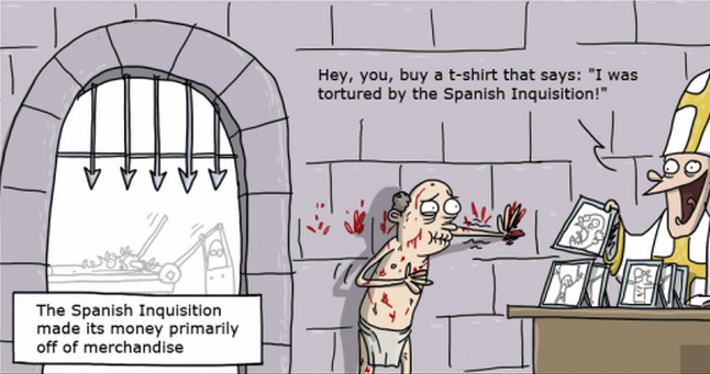 hey, you, buy a t-shirt that says:"i was tortureded by the spanish inquisition!"