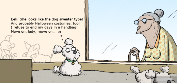 eek!she like the dog sweater type!and probably halloween costumes, too!i refuse to end my day in a handbag!move on, lady, move on...
