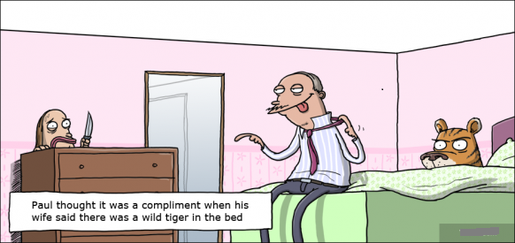 paul thought it was a compliment when his wife said there was a wild tiger in the bed