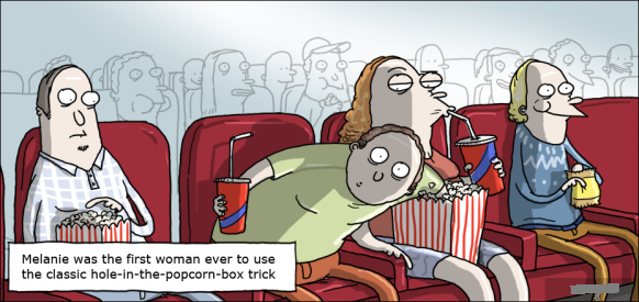 melanie was the first woman ever to use the classic hole-in-the-popcorn-box trick