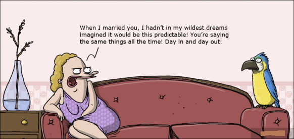 when i married you, i hadn't in my wildest dreams imagined it would be this predictable! you're saying the same things all the time! day in and day out!