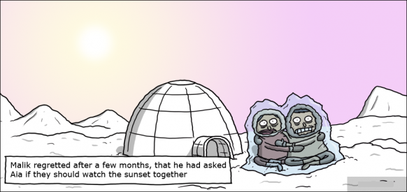 malik regrettd after a few months, that he had asked aia if they should watch the sunset together