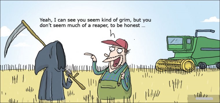 Yeah, I can see you seem kind of grim, but you don't seem much of a reaper, to be honest ...