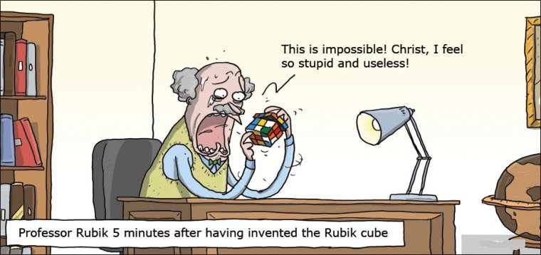 Professor Rubik 5 minutes after having invented the Rubik cube