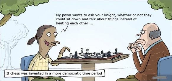 my pawn wants to ask your knight, whether or not they could sit down and talk about things instead of beating each other ...