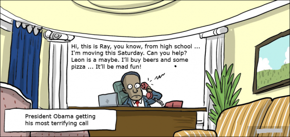hi, this is ray, you know, from high school ...i'm moving this saturday. can you help? leon is a maybe. i'll buy beers and some pizza... it'll be mad fun!