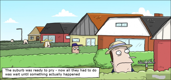 the suburb was ready to pry - now all they had to do was wait until something actually happened