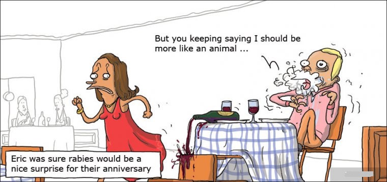 趣味图片英语笑话:rabies 狂犬病(双语)
