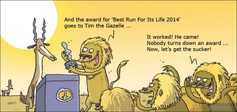 And the award for 'Best Run For Its Life 2014' goes to Tim the Gazelle ...