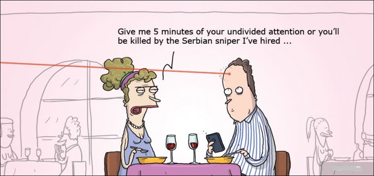 Give me 5 minutes of your undivided attention or you'll be killed buy the Serbian sniper I've hired