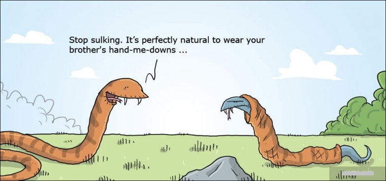 趣味图片英语笑话: hand-me-downs 旧衣服(双语)