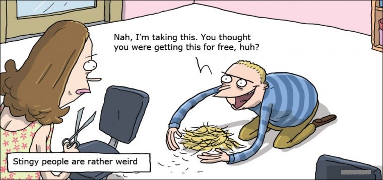 趣味图片英语笑话:Stingy people are rather weird 小气的人相当怪异(双语)