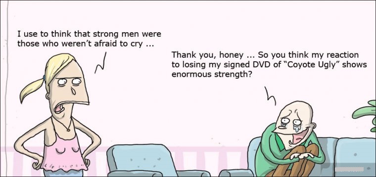 Thank you, honey ... So you think my reaction to losing my signed DVD of "Coyote Ugly"shows enormous strength?