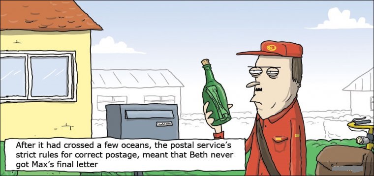 邮政服务跨越了几个海洋后,严格的矫正邮资,意味着贝丝不会收到麦克斯的最后一封信
