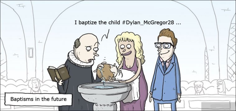 趣味图片英语笑话:Baptisms in the future 未来的洗礼(双语)