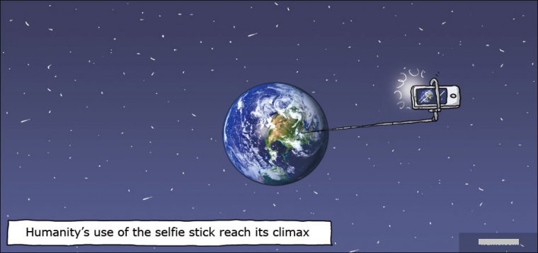 趣味图片英语笑话:selfie stick 自拍杆(双语)