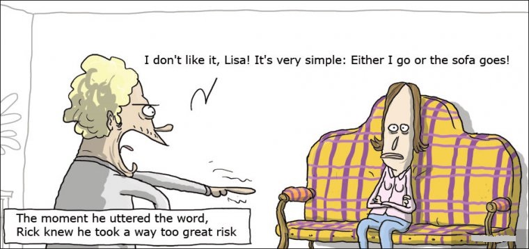 我不喜欢它,丽莎!很简单:要么我走要么沙发走!
