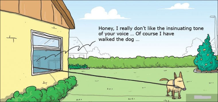 Honey, I really don't like the insinuating tone of your voice ... Of course I have walked the dog ...