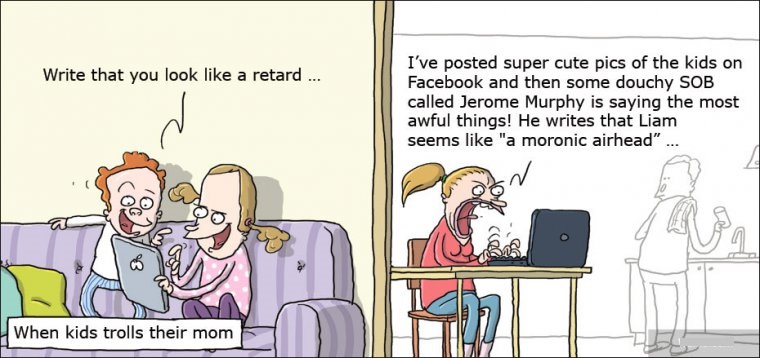 I've posted super cute pics of the kids on Facebook and then some douchy SOB called Jerome Murphy is saying the most awful things! He writes that Liam seems like "a moronic airhead" ...