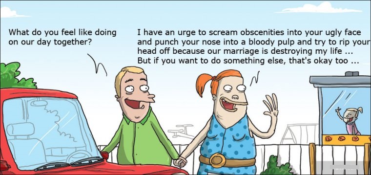 I have an urge to scream obscenities into your ugly face and punch your nose into a bloody pulp and try to rip your head off because our marriage is destroying my life ... But if you want to do something else, that's okay too...