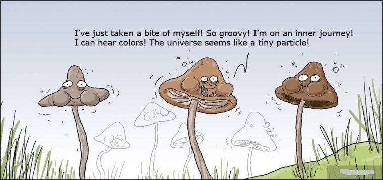 I've just taken a bite of myself! So groovy! I'm on an inner journey! I can hear colors! The universe seems like a tiny particle!