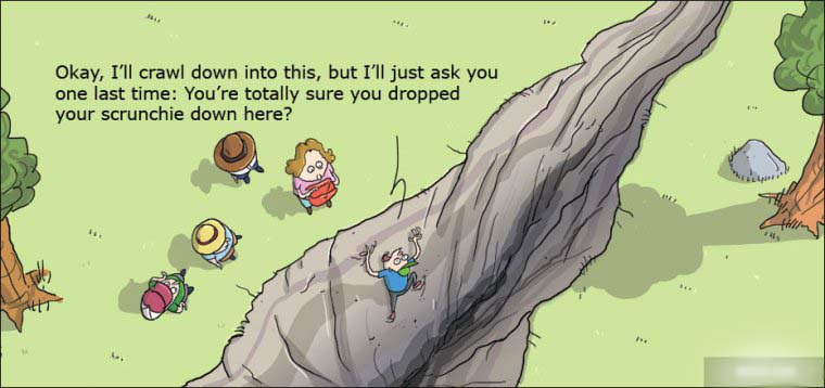 Okay, I'll crawl down into this, but I'll just ask you one last time: You're totally sure you dropped your scrunchie down here?