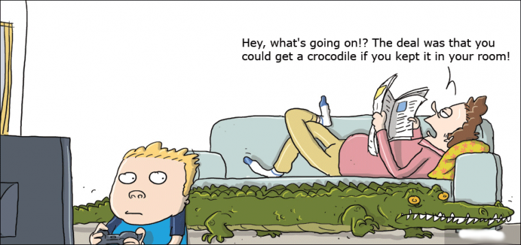 Hey, what's going on!? The deal was that you could get a crocodile if you kept it in your room!