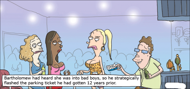 Bartholomew had heard she was into bad boys, so he strategically flashed the parking ticket he had gotten 12 years prior.