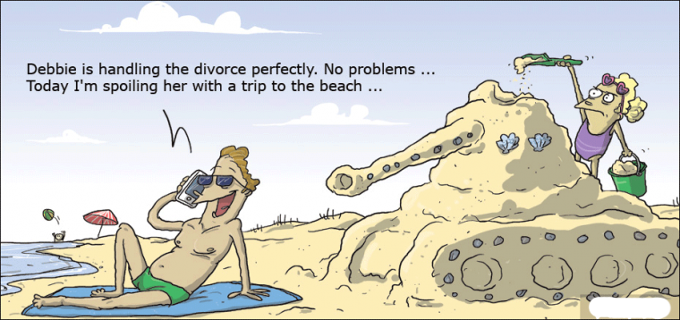 Debbie is handling the divorce perfectly. No problems... Today I'm spoiling her with a trip to the beach...