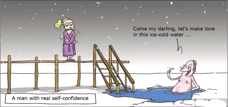 趣味图片英语笑话:A man with real self-confidence 一个真正自信的人(双语)