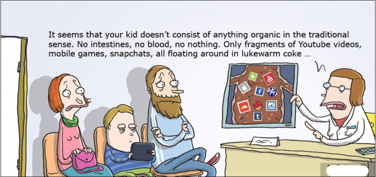 看来你的孩子没有任何传统意义上的有机体。无肠,无血,什么都没有。 只有YouTube片段视频,手机游戏,snapchats,都在不冷不热的焦炭中漂浮着...