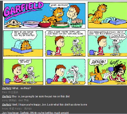 加菲猫的节食计划已经实行-看漫画学英语之加菲猫[5]--双语幽默漫画