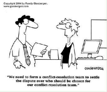 "We need to form a conflict-resolution team to settle the dispute over who should be closen for our conflict-resolution team."