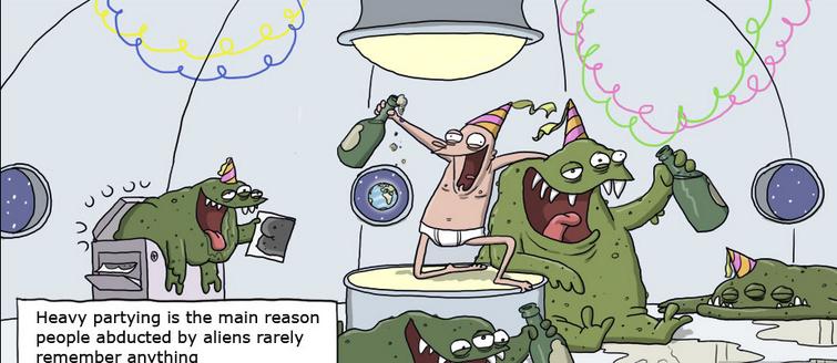 Heavy partying is the main reason people abducted by aliens rarely remember anything.