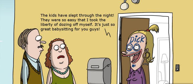 趣味图片英语笑话:The babysitter 保姆