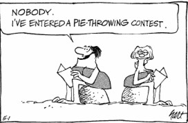A:Nobody.I’ve entered a pie-throwing contest.