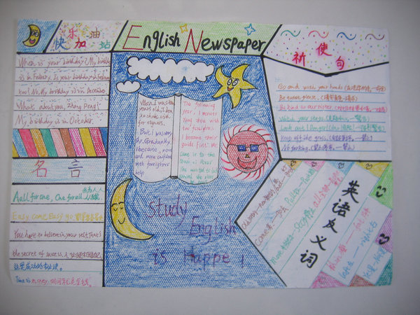 二年级英语手抄报-疯狂英语——语文课实际上就是通过言语来学习语言,也就是通过课文,一些具有汉语典范性的文作品来学习语言的,而不是孤立地去学字、词、句、章、等知识的。语文老师指导学生进行听说读写训练,就是指导学生把朦胧的思想变为清澈的思想,把不清不楚的语言变为有条有理的语言。